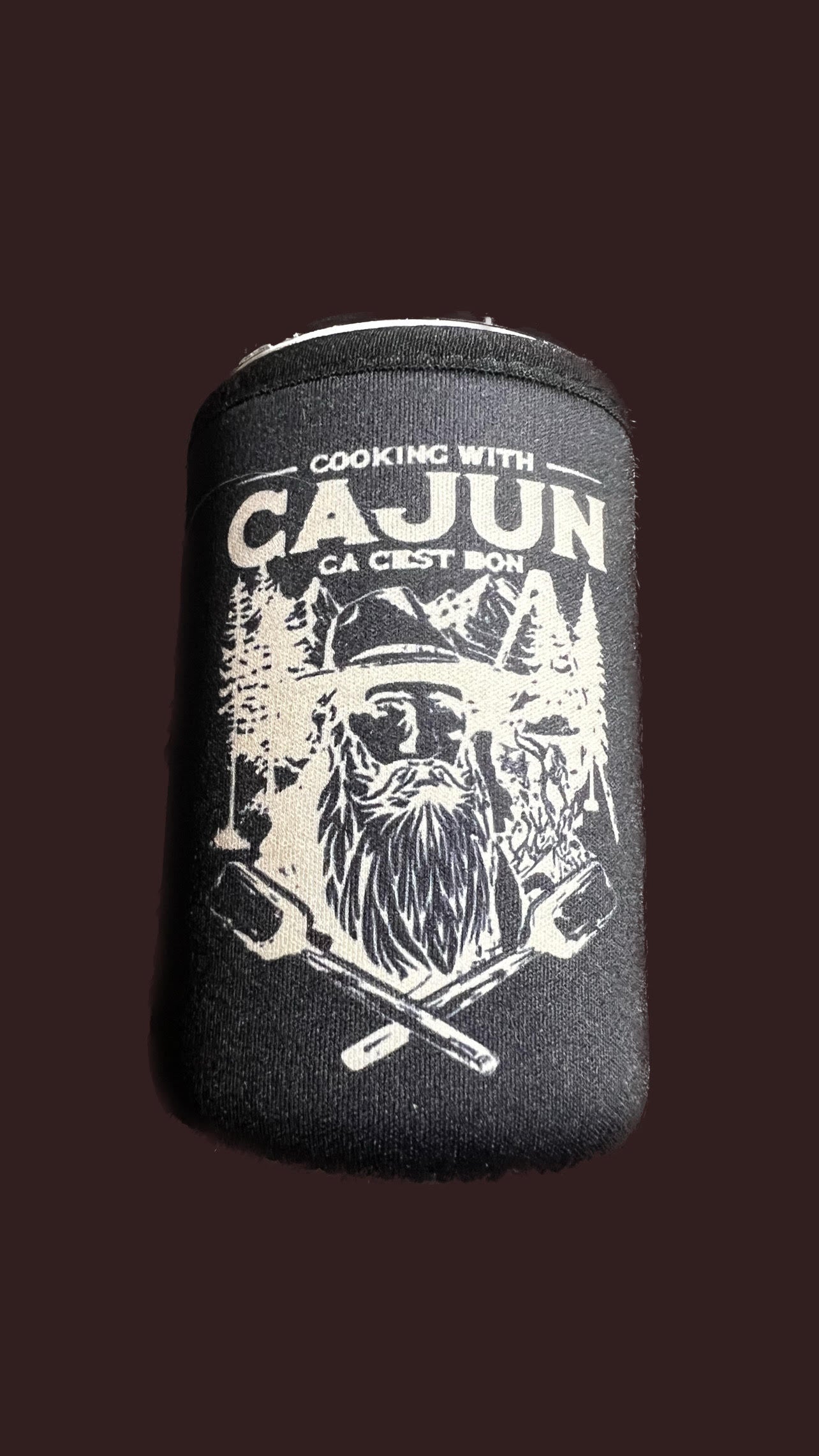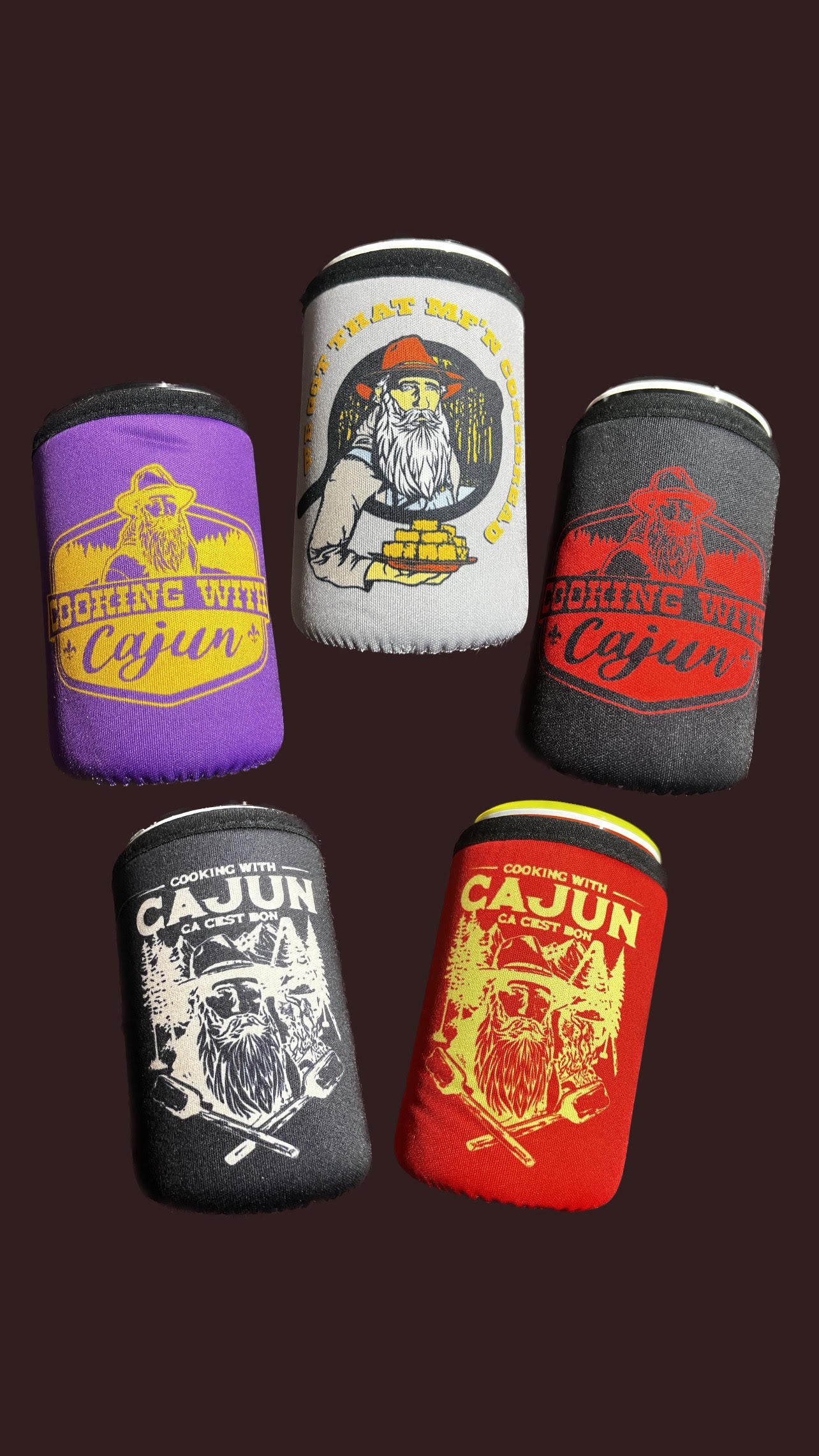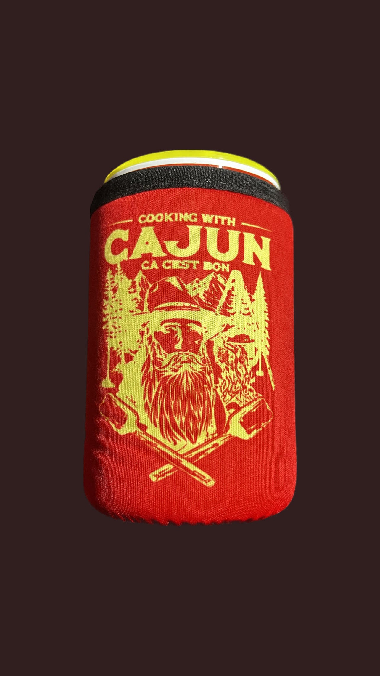 Cooking with Cajun Drink Koozies. Great to keep drinks cold and not your hands.