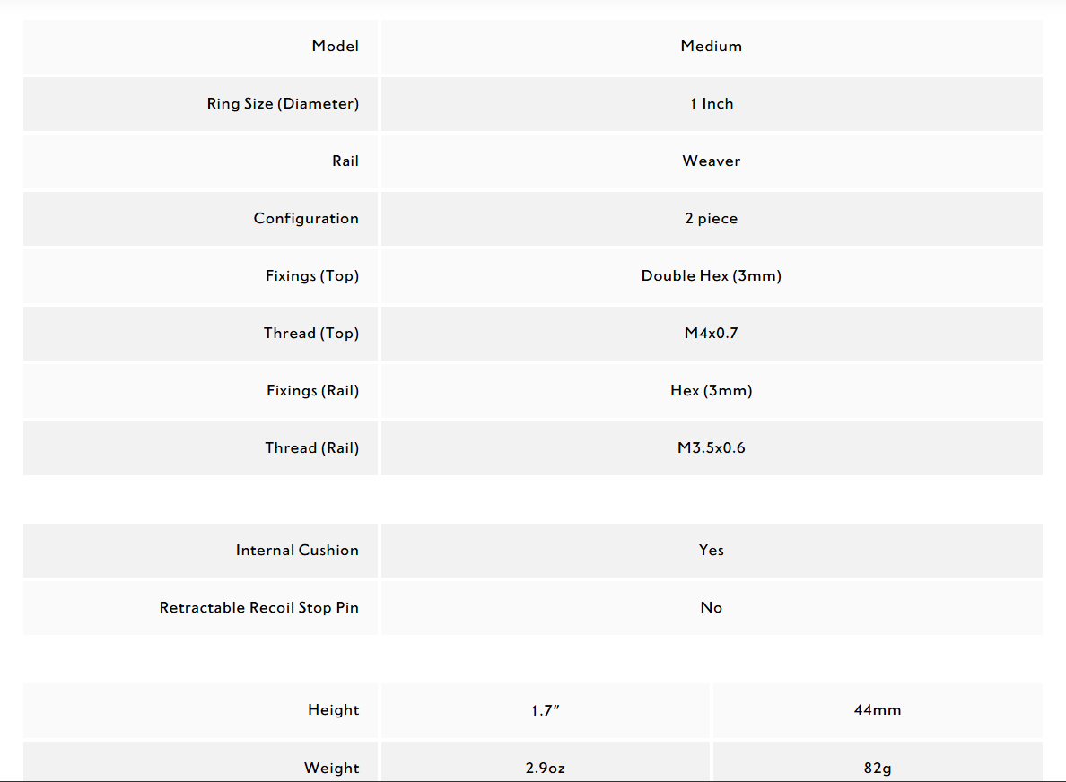 Hawke Optics Weaver Medium Match Rings 1" Matte