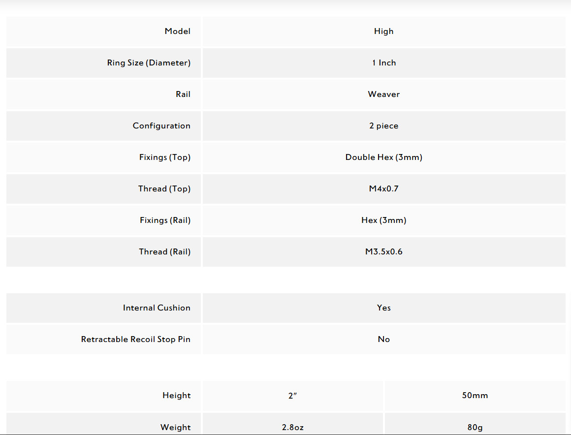 HAWKE 50mm Extension Ring 1" 2 Piece Weaver High
