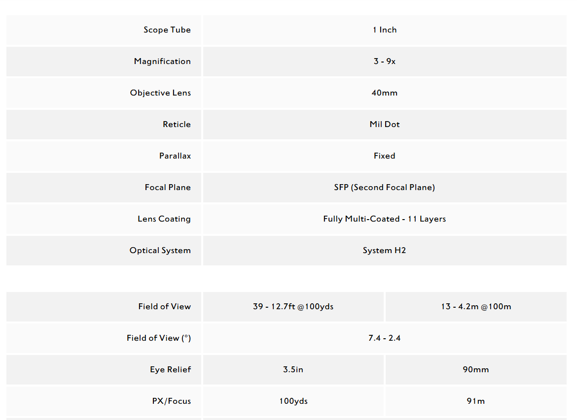 HAWKE Vantage 3-9x40 Mil Dot Reticle
